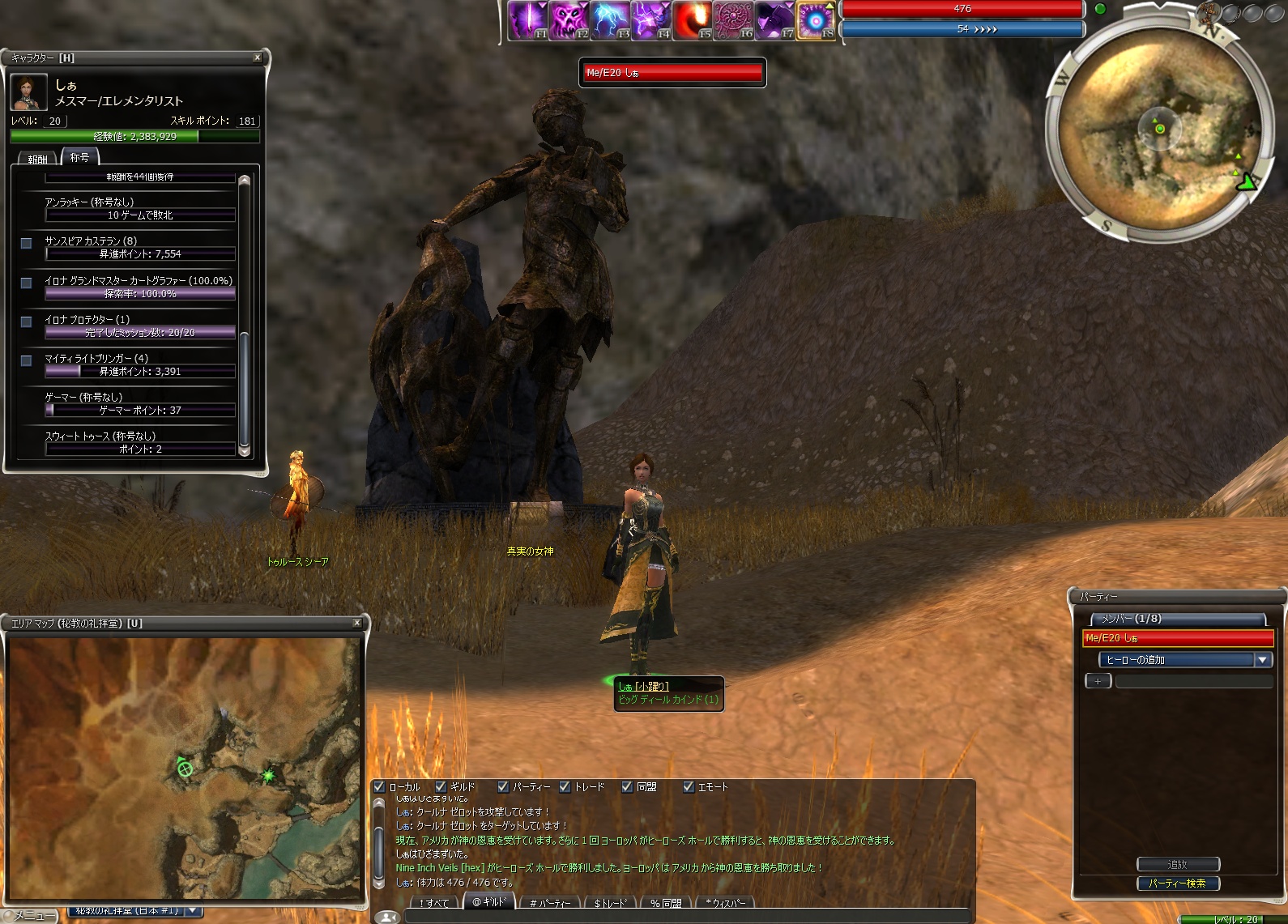 これで C1~C3 まで全て 100% 達成.難しいミッションを皆に手伝ってもらったりして,ティリア・キャンサ・イロナそれぞれの「プロテクター」の称号(全ミッションを最高レベルでクリア)もゲット,称号が合計 6つになって「ビッグディールカインド」の称号もゲットだ!