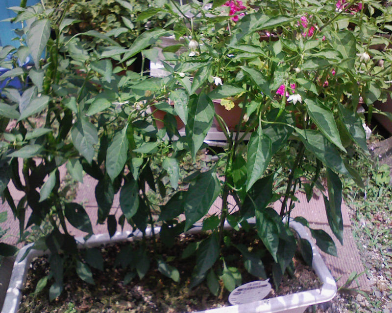 やっとハバネロさんにも実がつきはじめた 2007-06-28(Thu) ▽20070628a #園芸 #ハバネロ まぁ写真だとピンぼけな上に実がまだ小さい上にほとんどが葉の裏側なんでわかんないわけですが ( ´ω`) そしてゲキカラ&うまから唐辛子さんはこちら. うまから唐辛子さんにもたくさん実がついているのだが,サイズ的に普通の唐辛子のサイズなのかと思ってたら,実はこちらもゲキカラさん並にデカい.ゲキカラさんはデカい上に太いが,こちらはそれよりは細いみたい.ひょろっと. それにしても W/ZERO3[es] のカメラ機能はどうしてこう映したいところばっかピンぼけになるんだ.あれだ,何とか深度が狭いってーの? 新しいデジカメ欲しいにゃー.って唐辛子撮影するためにデジカメ購入とかどんだけ石油王かとw