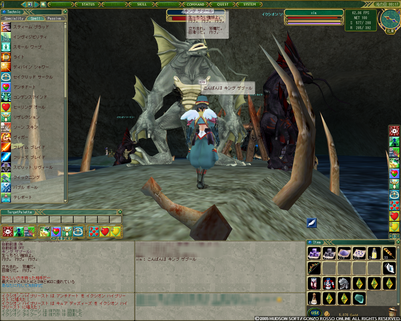 続いて皆が友好持ってる度ではかなりのものと思われる,イッチョン族の王ザブールさん.友好取ると会話できる.でもいきなり生っちろい扱いはどうよ.無礼者め.取り方は有名だけど,タルタロッサを大虐殺するか,あるいはザブールを狩る.ザブール殺すとザブールの友好も取れます.変なの.