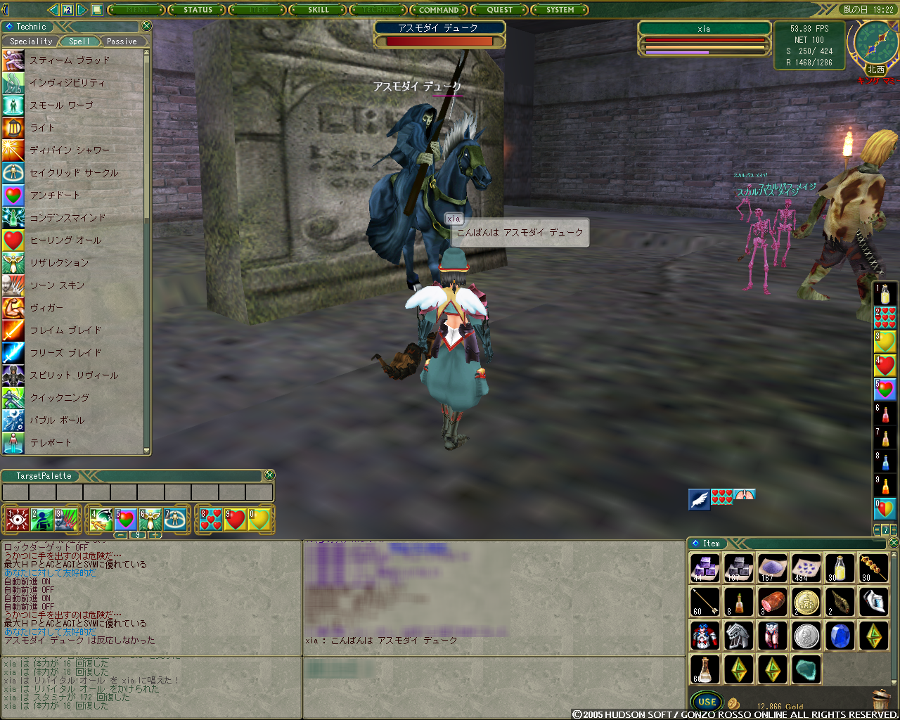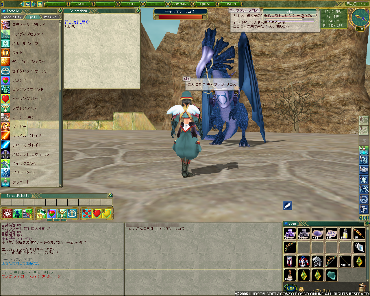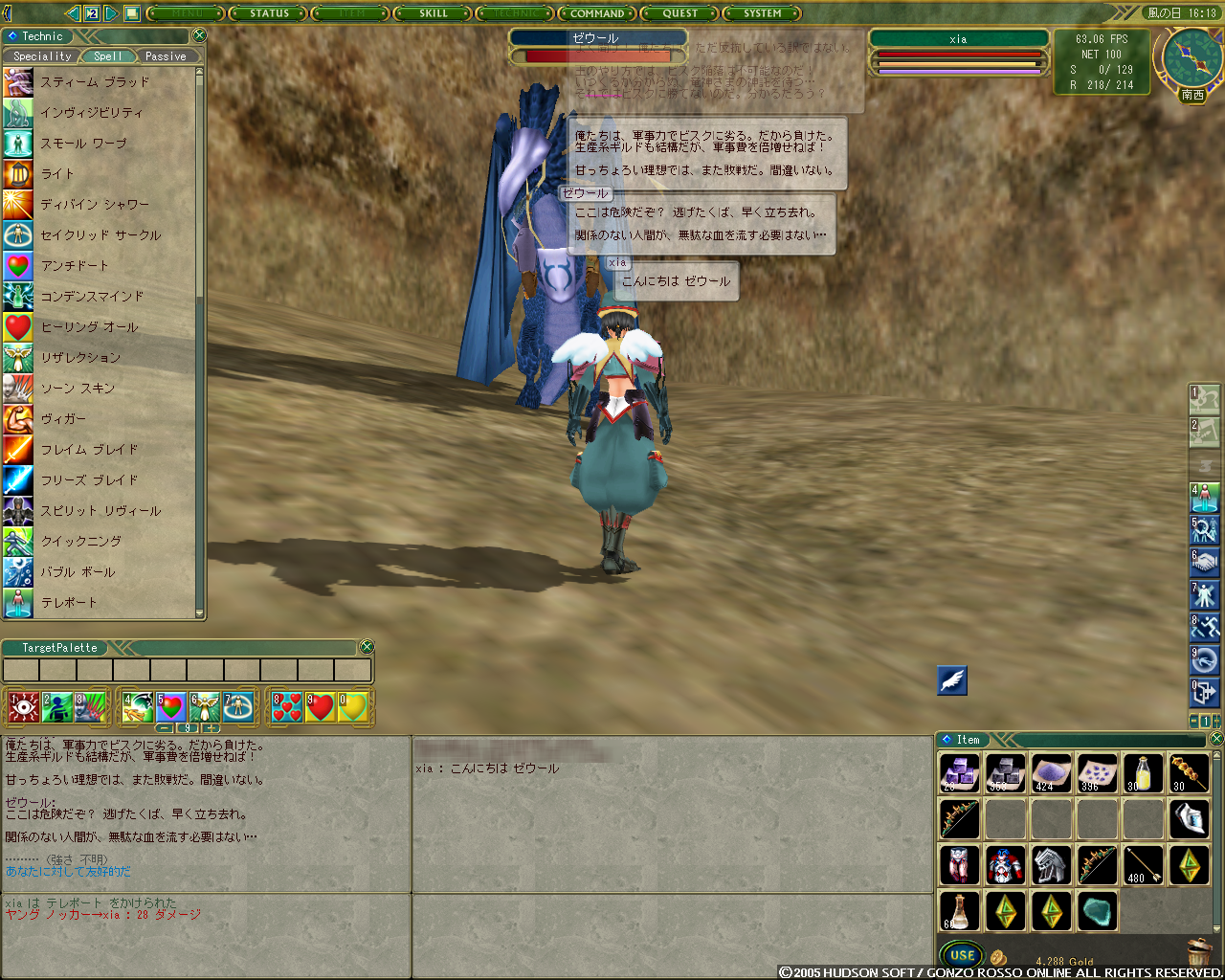というわけで,友人たちの協力も得て,ひたすらゼウール狩りをしては友好上げキャラにクエ報酬を取らせる.ちなみに「嫌っている」から「気にしていない」になったところから数えて,「友好」にするのにクエ 15回くらいかな.