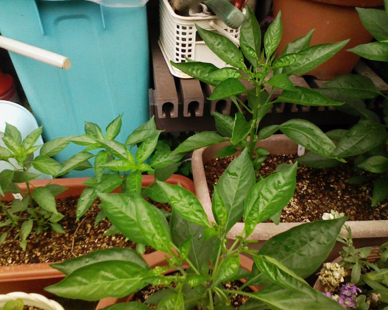 ハバネロ園芸 2008 2008-05-18(Sun) ▽20080518a #園芸 #ハバネロ 今年もまた,母上様庭園を間借りしてハバネロを栽培してみております. 去年より大きな鉢を使っているので,去年よりもっと大きく育つのではなかろーか. ついでに母上様はピーマンとししとうを買ってきて,一緒に育てております. あと「鷹の爪」とうがらしも一緒に. ハバネロ,ピーマン,ししとう,鷹の爪……みんな同じ科の植物なんで,基本的にそっくりというか見分けが付かんw 中でもハバネロだけが他とだいぶ違う感じ.実の見た目はハバネロとピーマンがそっくりなんだけどなw